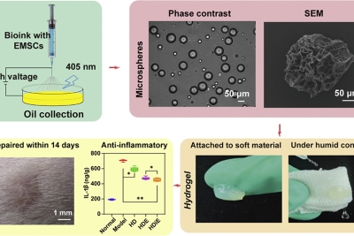 本研究开发了一种载腺苷(ADO)的粘性微流控水凝胶微球(PDA/ADO lipo@GelMA MS) 用于疼痛管理。