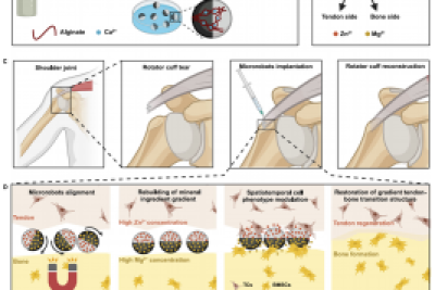 该研究聚焦脊髓损伤(SCI)修复,设计了一种“核-壳”结构的嵌合水凝胶微球(P−Zn2+@G−P−Mg2+),实现金属离子的阶段匹配释放以促进损伤脊髓修复。