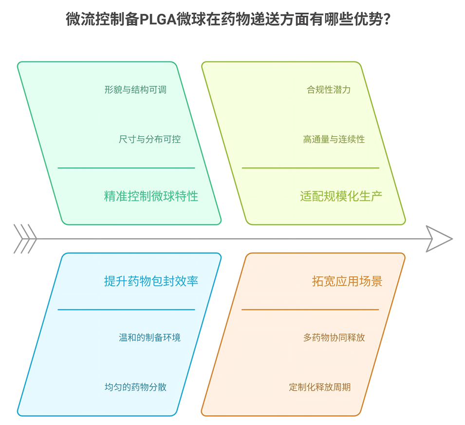 3、平衡“质量”与“产能”: 这种连续流微流控工艺在“单分散性”上可能略逊于精密的液滴技术,但换来了在可接受尺寸分布范围内,同时实现高通量、高稳健性和精确控制的巨大优势。这标志着微流控技术从实验室的“精密玩具”向工业界的“实用工具”迈出了关键一步,其目标不是追求极致的均匀,而是为制药行业提供一个可靠、可放大且经济可行的微球生产平台。