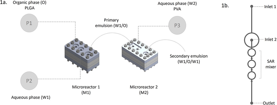 微球(1-1000 μm)可将活性药物成分包封于聚合物基质中,其中PLGA微球广泛用于药物递送领域,包括激素治疗、心血管治疗及化疗。常规方法(溶剂蒸发、喷雾干燥、沉淀)存在尺寸控制有限、包封效果差、批次变异性大等问题,阻碍了规模化生产与重复性。微流控技术可通过优化混合与传质过程,实现微球尺寸均匀性与形态可调性。然而,传统液滴系统仍面临微通道堵塞、生产通量低以及难以满足药品生产质量管理规范(GMP)要求等规模化难题,因此需开发更高效的微球合成工艺。