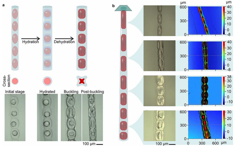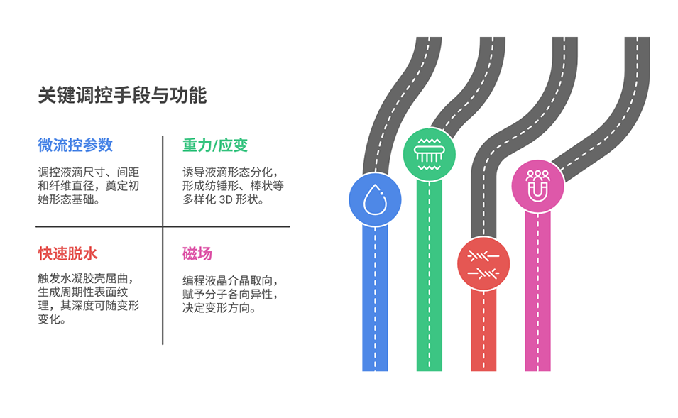 4、微流控-机械不稳定性-磁场耦合制备:整合微流控的高通量优势、水凝胶壳屈曲的纹理构建能力、磁场的分子取向编码功能,形成一体化制备流程,兼顾效率与精准度。