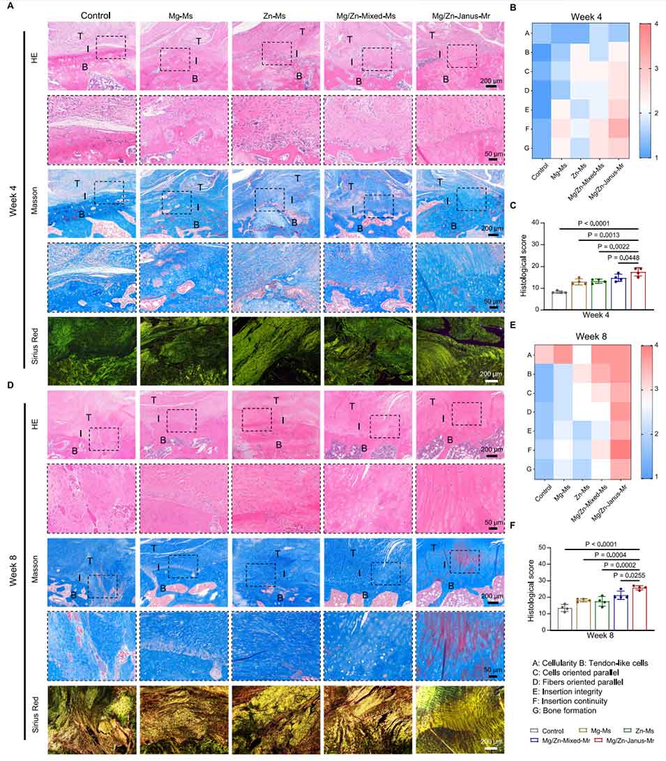 图7. 再生肌腱-骨界面(TBI)的组织学评估