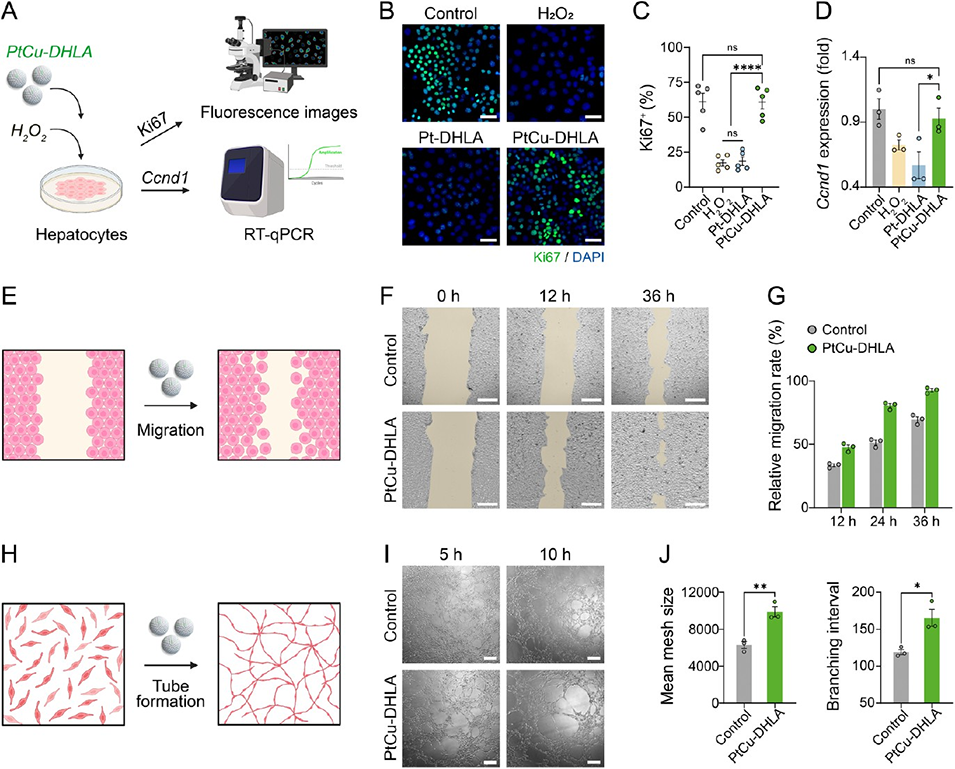 图4. PtCu-DHLA的促增殖与促血管生成潜能