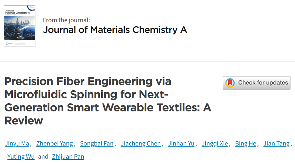 近期,苏州大学潘志娟教授团队发表综述,系统梳理了微流控纺丝技术在芯片材料、通道结构、固化策略等方面的核心进展,重点阐述了实心、核壳等多种结构导电复合纤维的制备与性能及其在智能穿戴纺织品传感、储能、热管理等领域的应用,同时指出了当前技术在规模化生产、多功能集成等方面的挑战并展望了未来发展方向。相关研究成果以“Precision Fiber Engineering via Microfluidic Spinning for Next-Generation Smart Wearable Textiles: A Review”为题目,发表于期刊《Journal of Materials Chemistry A》。