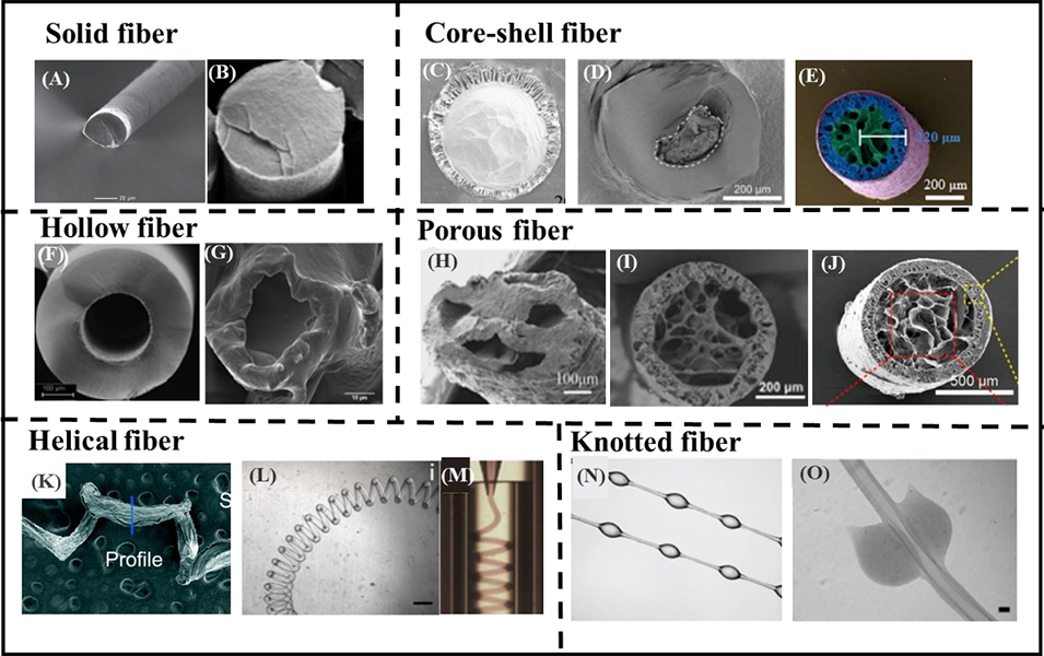 图1. 微流控纺丝技术框架图:原理、结构、性能与应用
