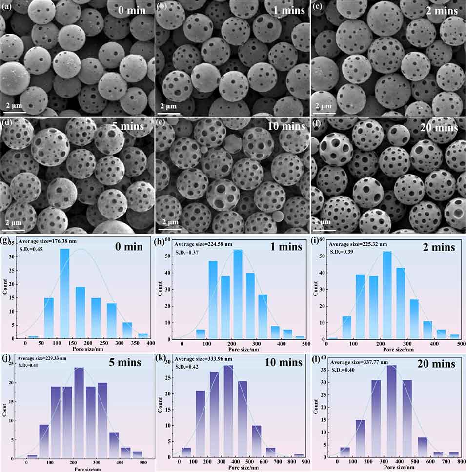 3、在PPS微球制备过程中,乙醇用量和停留时间的增加会显著提升孔的数量和尺寸,而当乙醇浓度达到0.154 M时,微球表面不会形成孔,而是呈现凹陷形貌。