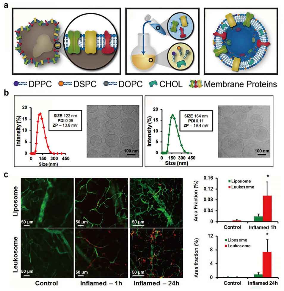 图4 白细胞质膜杂化脂质纳米粒的研发及其在靶向炎症治疗中的应用