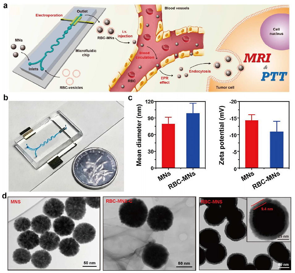 图11 微流控-电穿孔联用制备红细胞膜纳米粒的技术