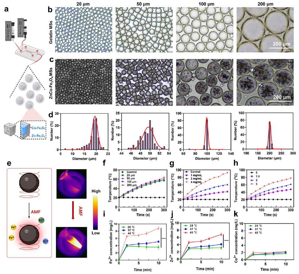 1、该研究聚焦肝细胞癌(HCC)治疗难题,开发了一种新型磁-金属-免疫治疗平台。通过成分与结构优化,合成磁热性能优异的ZnCo-Fe₃O₄核壳纳米立方体(CSNCs),其饱和磁化强度(Ms)和矫顽力(Hc)显著提升,经微流控技术组装为尺寸可调的磁性微球(MSs),整合了经动脉栓塞(TAE)与磁热疗法(MHT)功能。