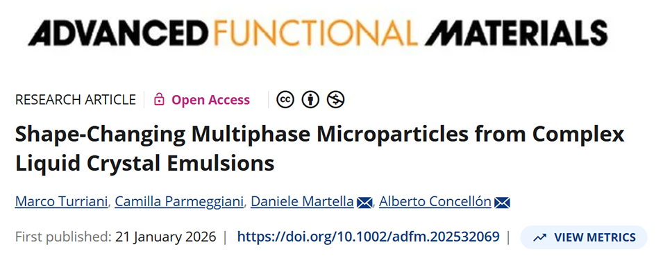 近期,佛罗伦萨大学联合多单位开发了一种基于批量乳化的简便方法,可大规模制备具有单相、双相(Janus)及三相结构的液晶网络微驱动器。这些微粒不仅能通过热或化学刺激实现可逆、大幅度的形状变化,还可作为自适应微透镜,动态调控焦距与放大倍数。相关研究以“Shape‐Changing Multiphase Microparticles from Complex Liquid Crystal Emulsions”为题目,发表在期刊《Advanced Functional Materials》上。
