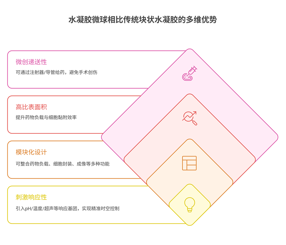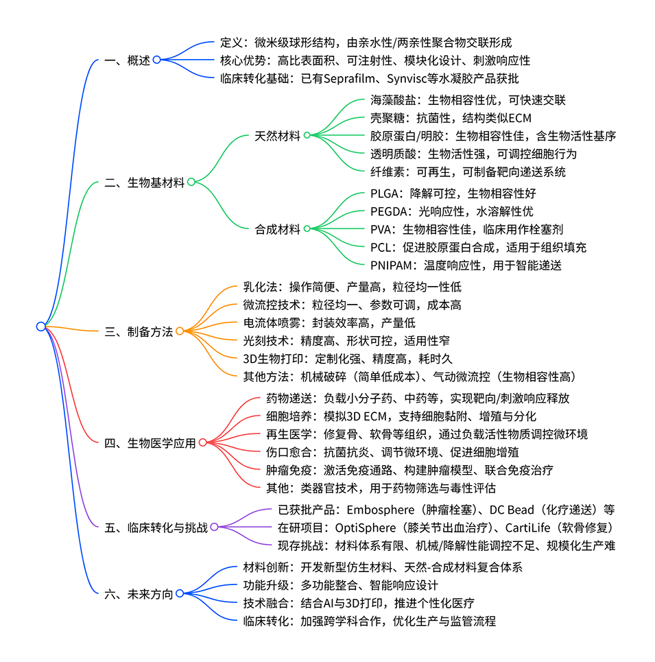 2、重点阐述了其在药物递送、细胞培养、再生医学、伤口愈合、肿瘤免疫等核心场景的应用机制与研究进展,提及已获批的临床产品(如Embosphere、DC Bead)和在研项目。