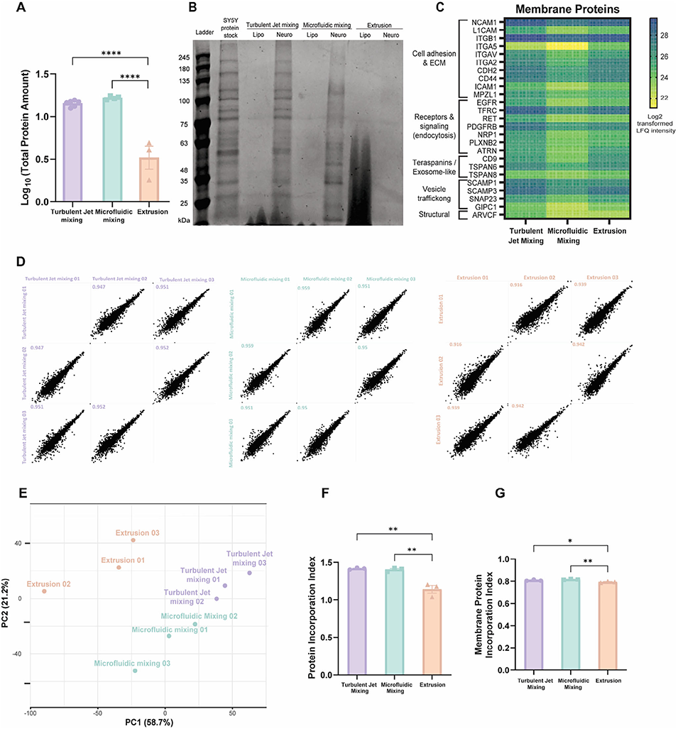 3、通过高分辨率LC-MS/MS蛋白质组学分析,首次量化了不同方法制备的BNPs膜相关蛋白谱差异。此外,三种方法均能有效封装阿霉素并实现可控释放,但前两种方法制备的BNPs在与SH-SY5Y神经母细胞瘤细胞的同源结合中更具优势。