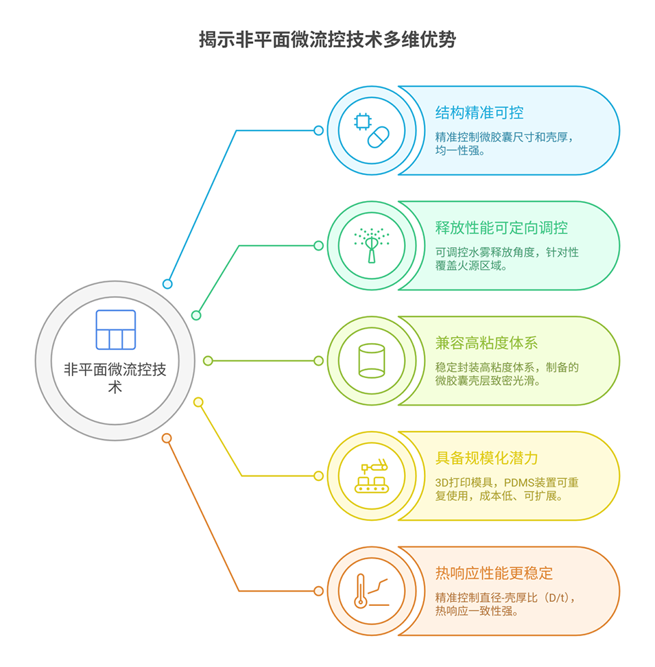 3、技术突破口:微流控技术可制备单分散、结构可调的微胶囊,结合热响应机制,有望实现早期火灾精准防控。