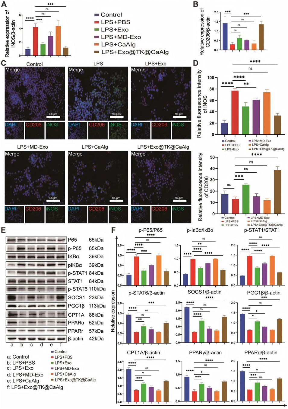 图5. Exo@TK@CaAlg水凝胶微球对巨噬细胞极化及代谢重编程的影响