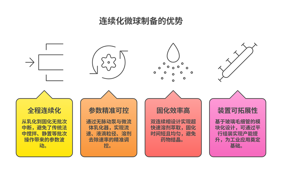 研究证实,该连续流-固化平台通过精准的工艺控制实现了微球结构的高度均一,搭建起工艺与性能的直接关联,解决了长效PLGA微球制备的核心痛点,不仅减少了对动物实验的依赖,还加速了难溶性小分子药物长效注射微球的研发与临床转化,同时该平台具备工业规模化潜力,契合质量源于设计和连续制造的制药行业发展趋势。