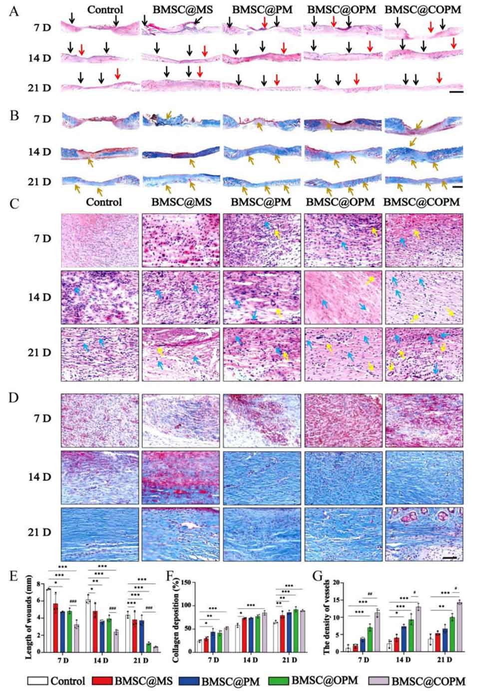 图6 BMSC@COPM处理糖尿病创面的组织学检查