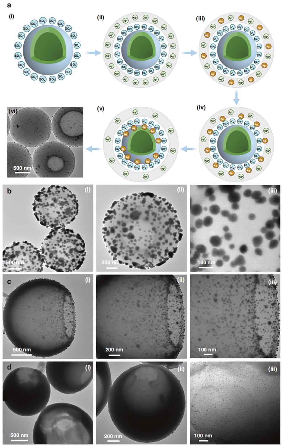 图5贵金属修饰中空聚苯乙烯微球的机制及透射电镜表征
