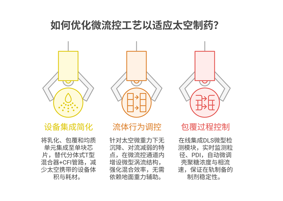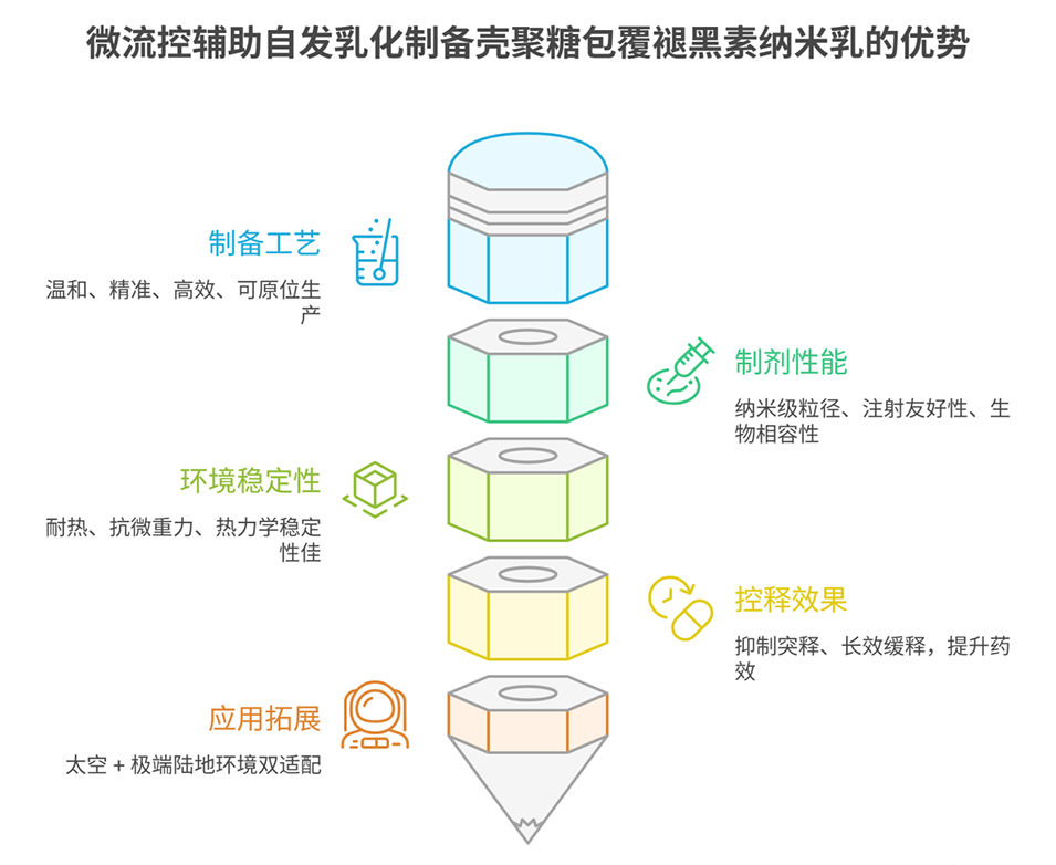 6、该研究将微流控界面工程与壳聚糖包覆结合,开发出适用于航天的稳定注射型纳米乳剂,为解决长期太空任务中液态药物的稳定性难题提供了新策略;该配方工艺也可拓展至灾区、偏远诊所等极端地面环境的药物制备,后续需在真实微重力和辐射环境中验证,并开展体内药代动力学研究。