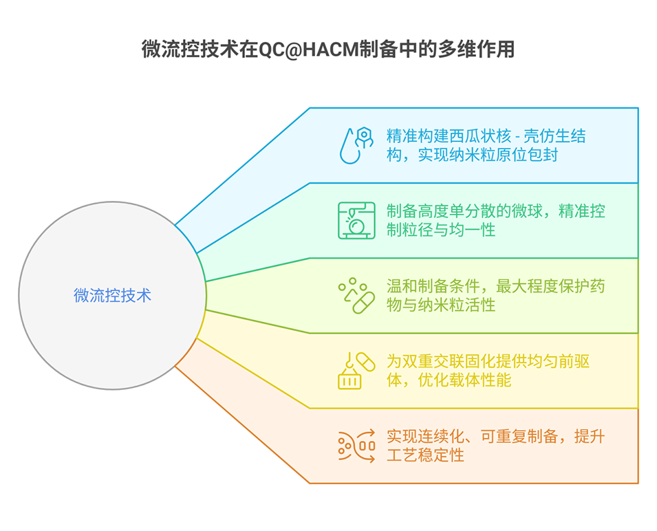 采用微流控一步法制备,实现载体高单分散性与结构精准可控。
