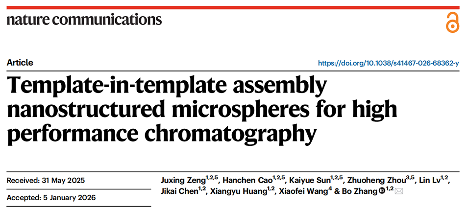 近期,厦门大学张博教授团队开发出基于微流控平台的双模板组装纳米结构化(TiTAN)策略,通过微液滴模板精准调控微球形貌与单分散性、胶体模板独立构筑内部有序介孔,实现了微球宏观形貌与微观介孔结构的同步精准调控,该策略可拓展至不同粒径、孔道构型及材料体系,能实现介孔参数 2 Å 空间分辨率的精细调谐。以此制备的有序介孔微球作为色谱固定相,相比传统材料大幅提升了分离效率与保留能力,可在短时间内实现多环芳烃、二甲苯异构体等“关键物质对”的高效色谱分离。相关研究以“Template-in-template assembly nanostructured microspheres for high performance chromatography”为题目,发表在期刊《Nature Communications》上。
