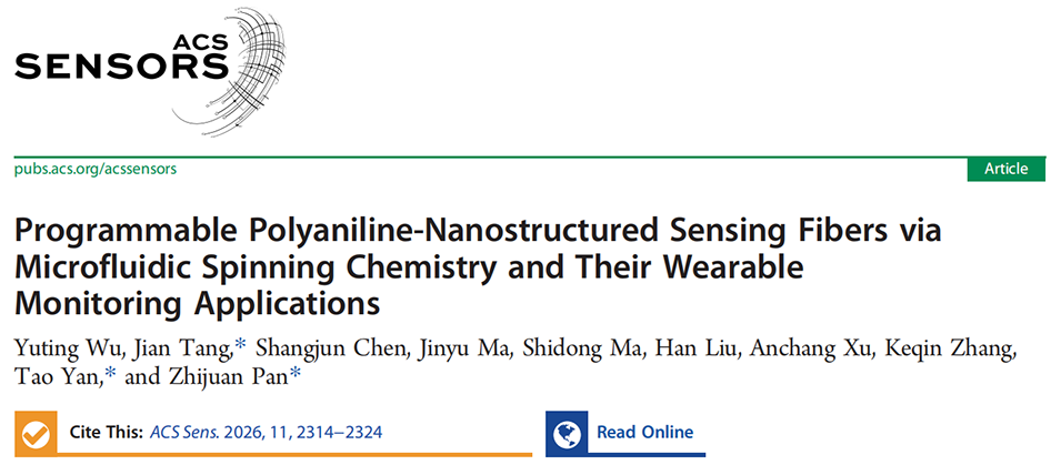 近期,苏州大学潘志娟教授、闫涛副教授团队与浙江大学先进机械研究所Jian Tang等人合作,提出了一种创新的在线原位聚合微流体纺丝(OIPMS)策略,实现了在PANI/TPU复合纤维表面一步法连续生长并精准调控多种PANI纳米结构。该方法制备的纳米线传感纤维兼具高灵敏度、宽检测范围与优异的稳定性,在智能运动监测、军事信号解码及医疗健康监测等领域展现出显著的应用潜力。相关研究以“Programmable Polyaniline-Nanostructured Sensing Fibers via Microfluidic Spinning Chemistry and Their Wearable Monitoring Applications”为题目,发表于期刊《ACS Sensors》。