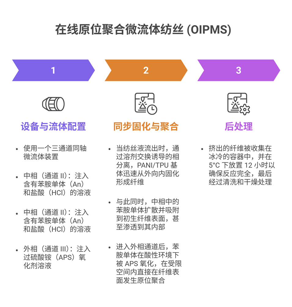 总结: 这种基于微流体化学的制备方法解决了传统PANI传感纤维生产效率低、结构控制难等问题,在运动科学、军事通信和医疗健康监测领域具有显著的应用价值。
