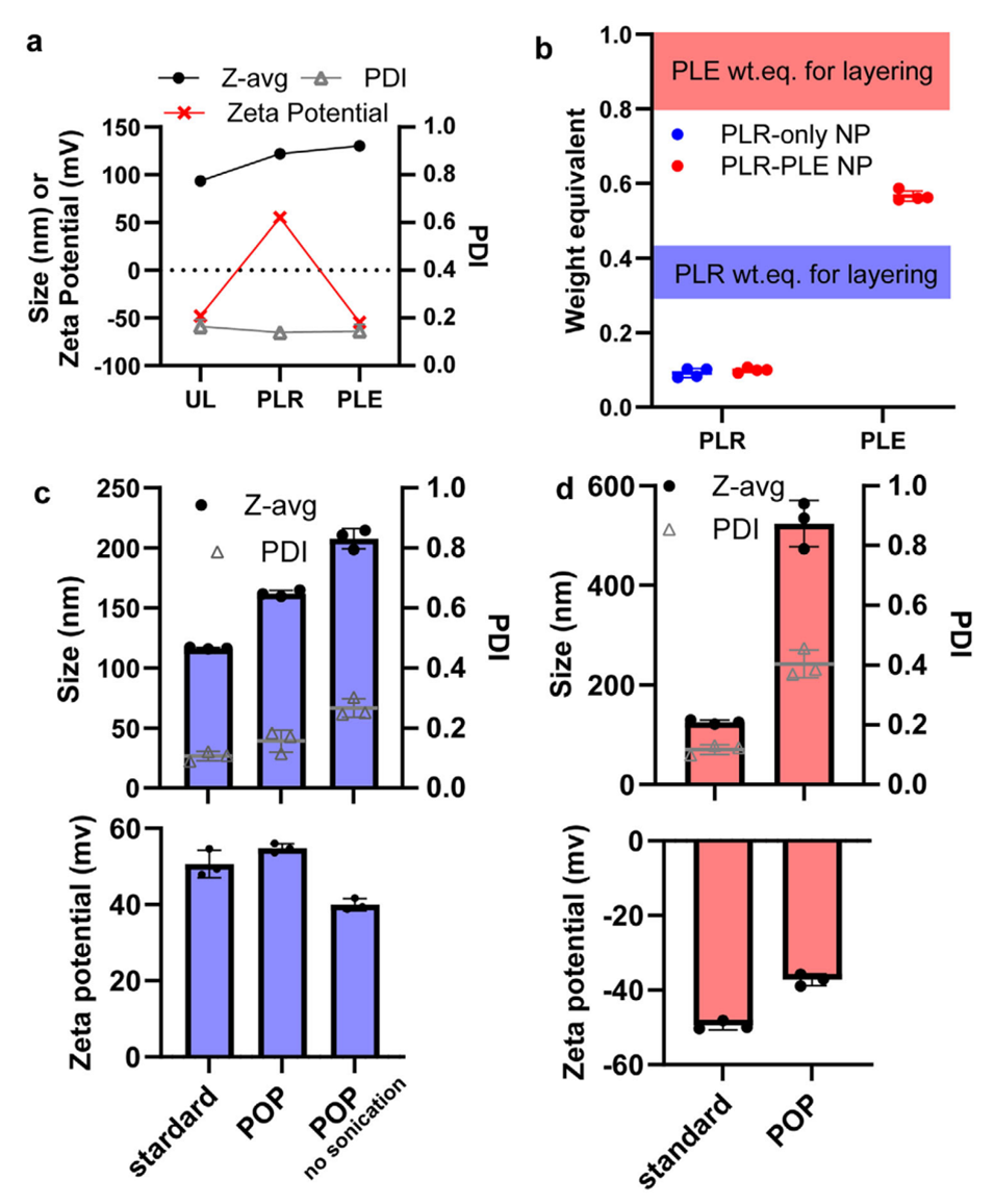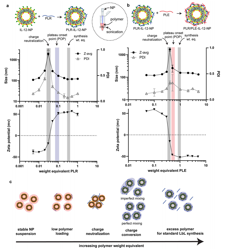 图 4. 微流控层层组装保持聚谷氨酸(PLE)/聚精氨酸(PLR)层层组装纳米颗粒所需的体外特性