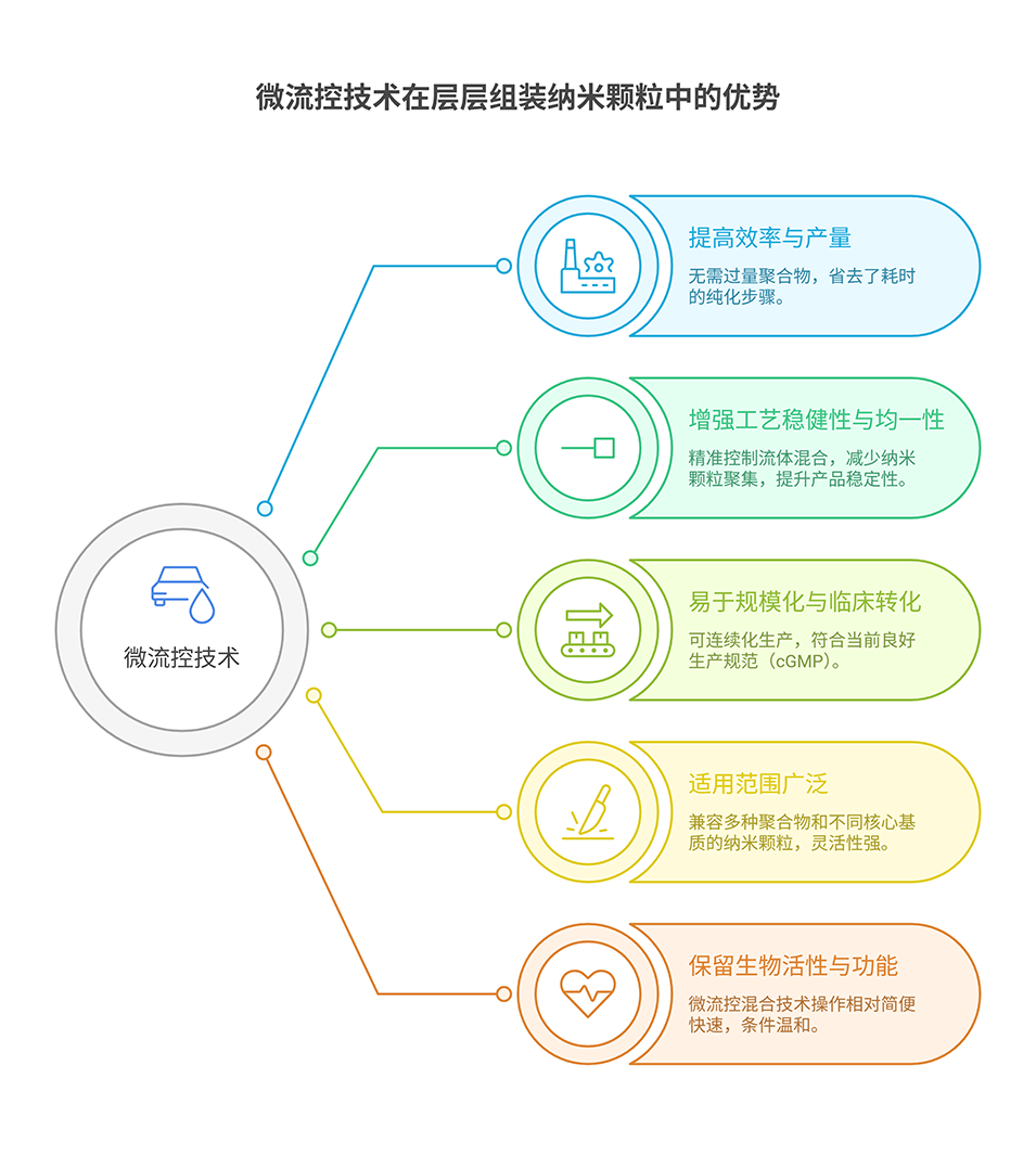 图 3. 微流控混合芯片实现均一的层层组装纳米颗粒制备,无需纯化步骤