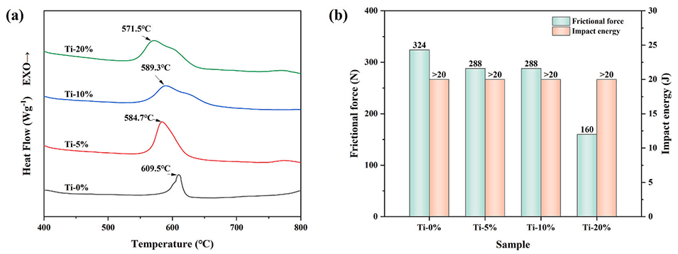 图 6:样品的差示扫描量热(DSC)分析图(a)与机械感度测试图(b)