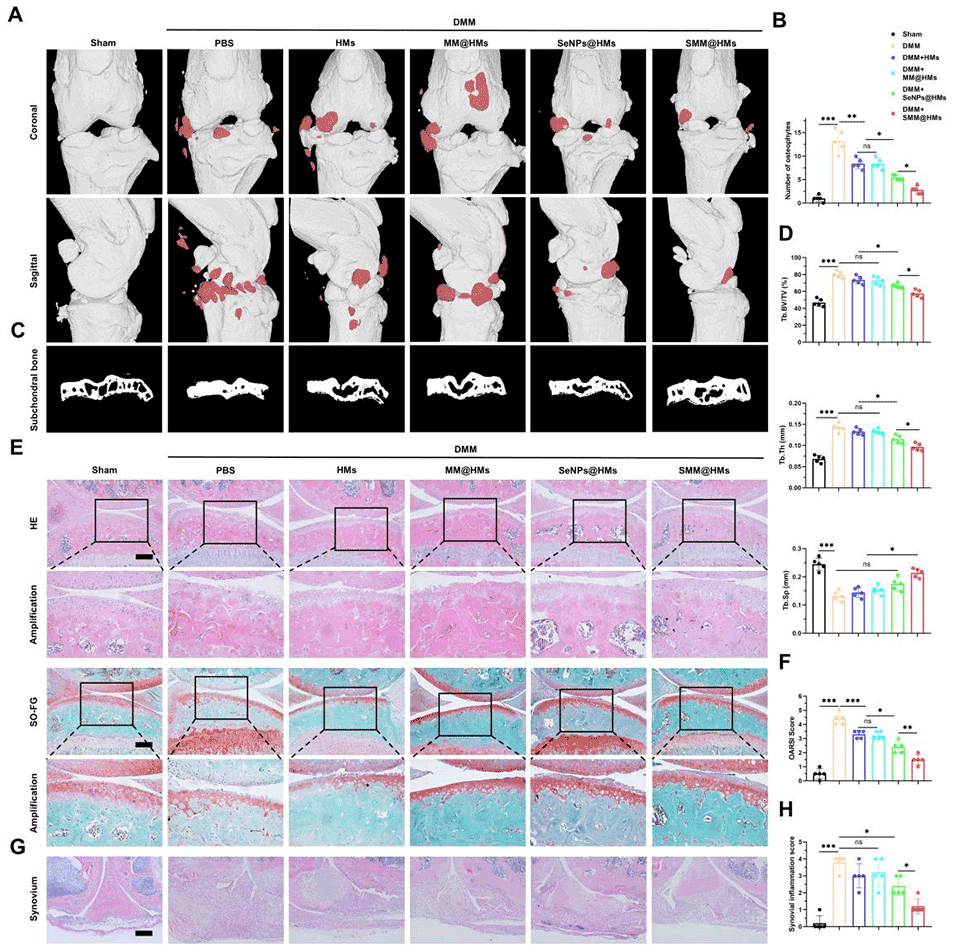 图 7:SMM@HMs 在体内缓解骨关节炎(OA)病理表型