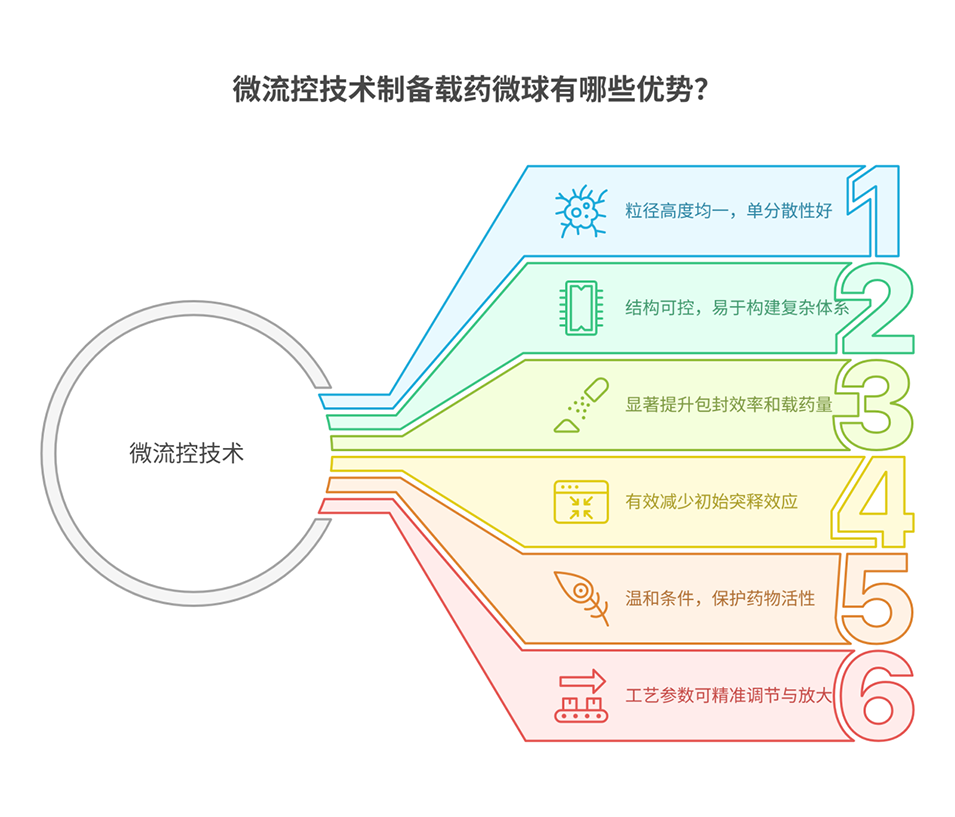 工艺优化 | 1. 采用微流控技术 | 生成单分散液滴,精确控制结构,工艺稳定,批间一致性好(核心优势) |