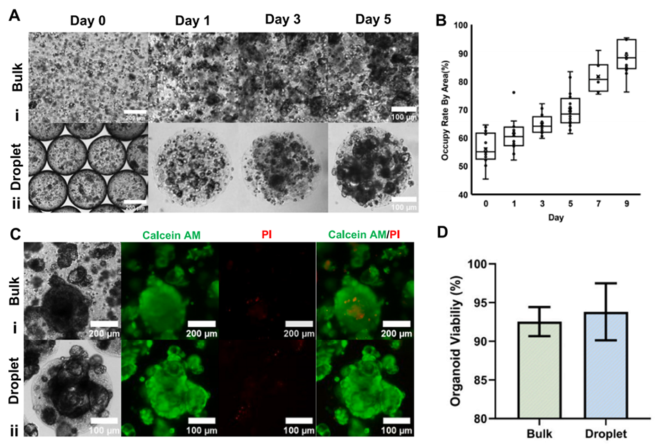 图2. 利用微流控液滴装置生成结直肠癌类器官-液滴单元(CCO-D)