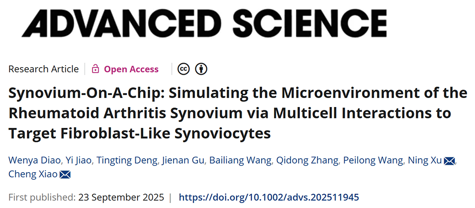 近期,中日友好医院肖诚研究员、中国农业科学院许柠博士等人整合微流控芯片、3D培养与流动培养技术,开发了一种新型血管化滑膜芯片模型。该模型通过将RA患者来源的FLSs与M1型巨噬细胞、人脐静脉内皮细胞在优化比例下进行3D动态共培养,成功模拟了体内滑膜的慢性炎症微环境,并证实其在药物疗效与毒性评估方面的独特优势。相关研究以“Synovium-On-A-Chip: Simulating the Microenvironment of the Rheumatoid Arthritis Synovium via Multicell Interactions to Target Fibroblast-Like Synoviocytes”为题,发表于期刊《Advanced Science》。