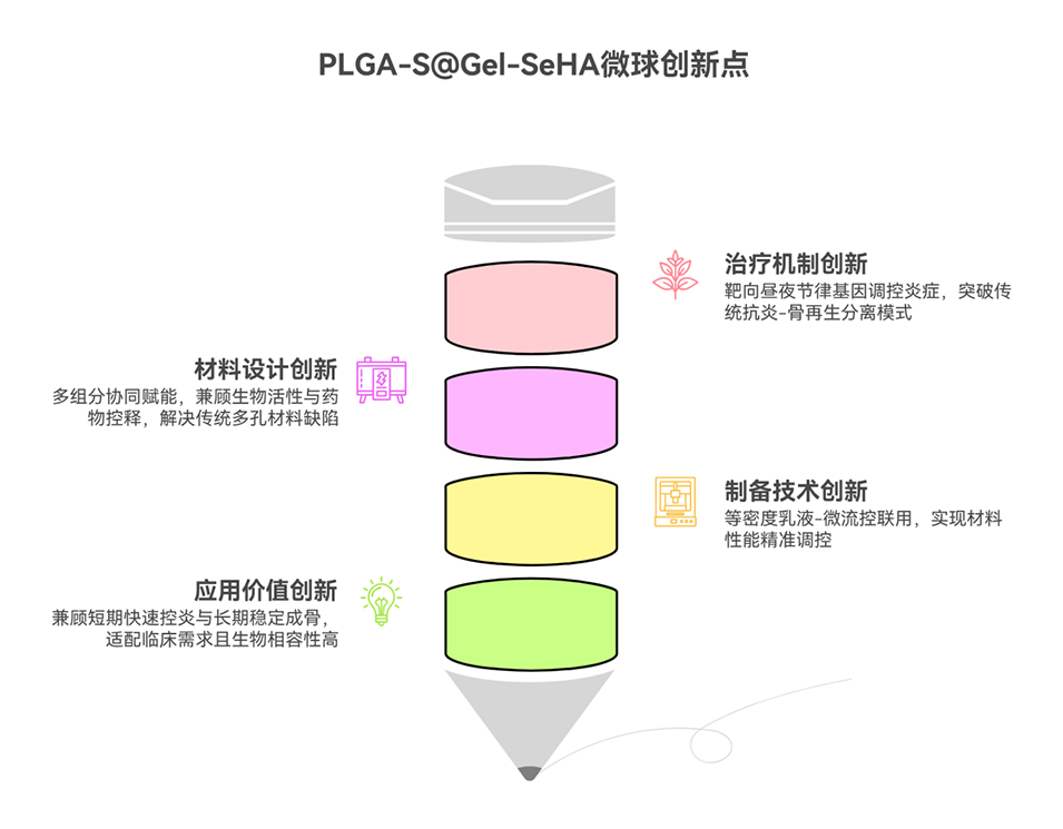 近期,华中科技大学陈莉莉教授、王一帆副教授团队针对牙周炎引发的牙槽骨缺失难题,开发出一种新型多孔微球材料PLGA-S@Gel-SeHA。该材料通过持续释放靶向昼夜节律核受体REV-ERB的小分子STL1267,有效平抑了炎症因子的异常波动,引导巨噬细胞向促修复的M2表型极化,从而在炎症环境下成功实现了牙槽骨的显著再生。相关研究以“Porous Microspheres Loading Small Molecule Targeting REV-ERBs Modulate Inflammatory Cytokines Fluctuations to Promote Periodontal Bone Regeneration”为题,发表于期刊《Advanced Healthcare Materials》。