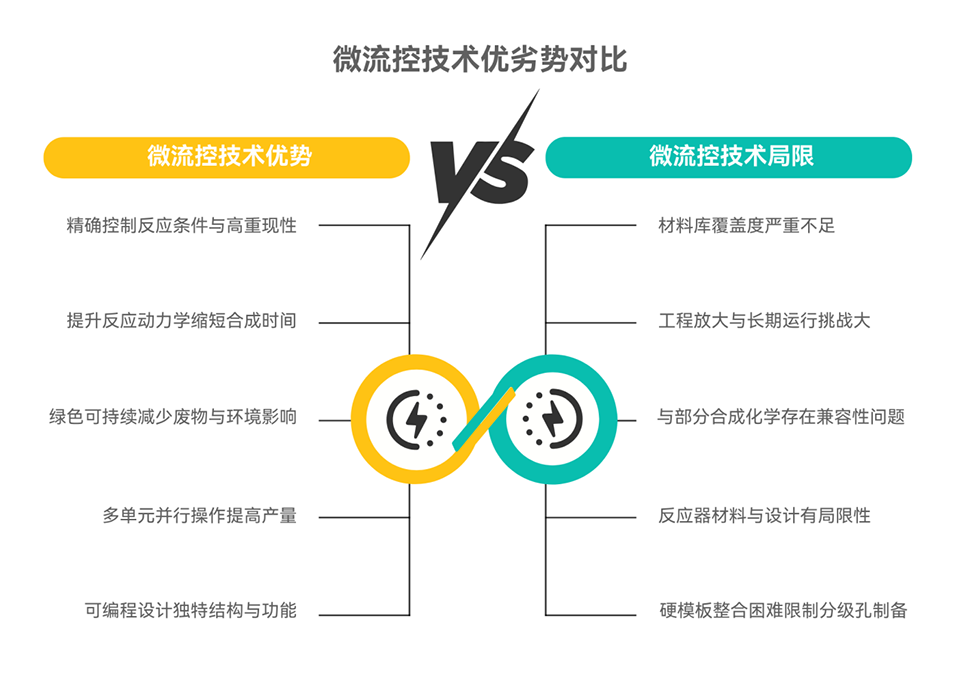 金属有机框架(MOFs)、共价有机框架(COFs)和氢键有机框架(HOFs)(统称MCHOFs)在催化、药物递送、分离和吸附等领域应用广泛。然而,传统合成方法存在动力学缓慢、反应条件控制不精确、产物粒径分布宽及重复性差等问题。微流控合成作为一种绿色高效的替代方案,能精确控制反应条件和产物性能,显著缩短合成时间至分钟级,并减少废物生成。