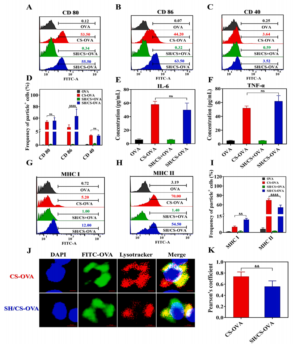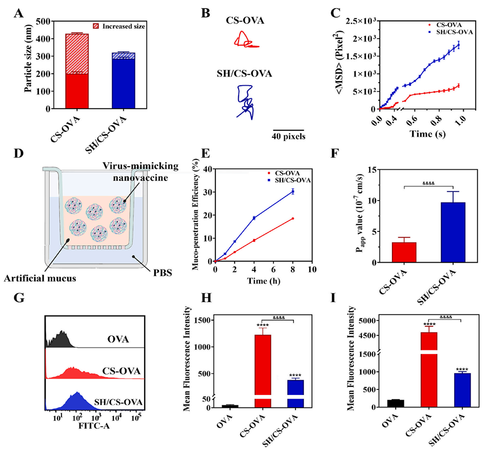 3、与未修饰疫苗相比,SH/CS-OVA 在穿透黏液层和逃逸巨噬细胞吞噬方面表现卓越,效率分别提升了3倍和4.8倍,并显著增强了树突状细胞的招募、摄取与成熟。