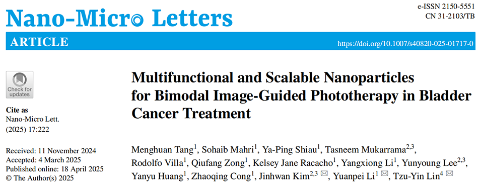合理设计能够将治疗效果与药物分布和肿瘤状态实时监测相结合的多功能纳米平台正在成为癌症纳米医学中一种有前景的方法。近期,加州大学戴维斯分校生物化学与分子医学系Yuanpei Li教授等人开发了一种多功能纳米平台——焦脱镁叶绿酸a-双氨基喹啉共轭脂质纳米颗粒(PPBC LNPs)。该颗粒通过微流控技术制备,兼具光动力、光热治疗与自噬抑制三重功能,以及光声和荧光双模态成像能力,在膀胱癌模型中实现了高效诊疗并展现出良好临床转化潜力。相关研究以“Multifunctional and Scalable Nanoparticles for Bimodal Image-Guided Phototherapy in Bladder Cancer Treatment”为题目,发表于期刊《Nano-Micro Letters》。