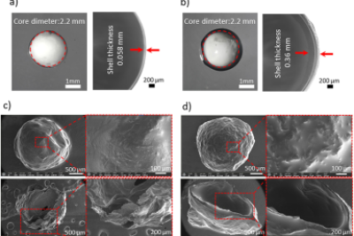本研究利用主动流动聚焦(AFF)技术制备了具有可控潜热的相变微胶囊,核材料为十六烷,壳材料为聚脲。