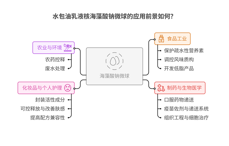 水包油(O/W)乳液广泛用于印刷油墨、食品、医药(如疫苗载体)等领域,但其热力学不稳定,易发生重力分离、液滴聚并或奥氏熟化。传统乳液填充凝胶存在释放效率低、包封率差、易突释等问题。近期,澳大利亚格里菲斯大学团队开发了一种以水包油乳液为核、海藻酸钠为壳的核壳微珠。通过优化表面活性剂浓度与油相体积分数,成功制备出稳定性高、液滴尺寸均匀的乳液,并将其封装于不同壳厚的海藻酸钠微珠中,系统评估了微珠的形貌、油含量、溶胀行为与机械性能,为乳液在控释输送系统中的封装与保护提供了新策略。相关研究以“Generation of Oil‐In‐Water Emulsion‐Core Sodium Alginate Beads”为题发表于期刊《Macromolecular Chemistry and Physics》。