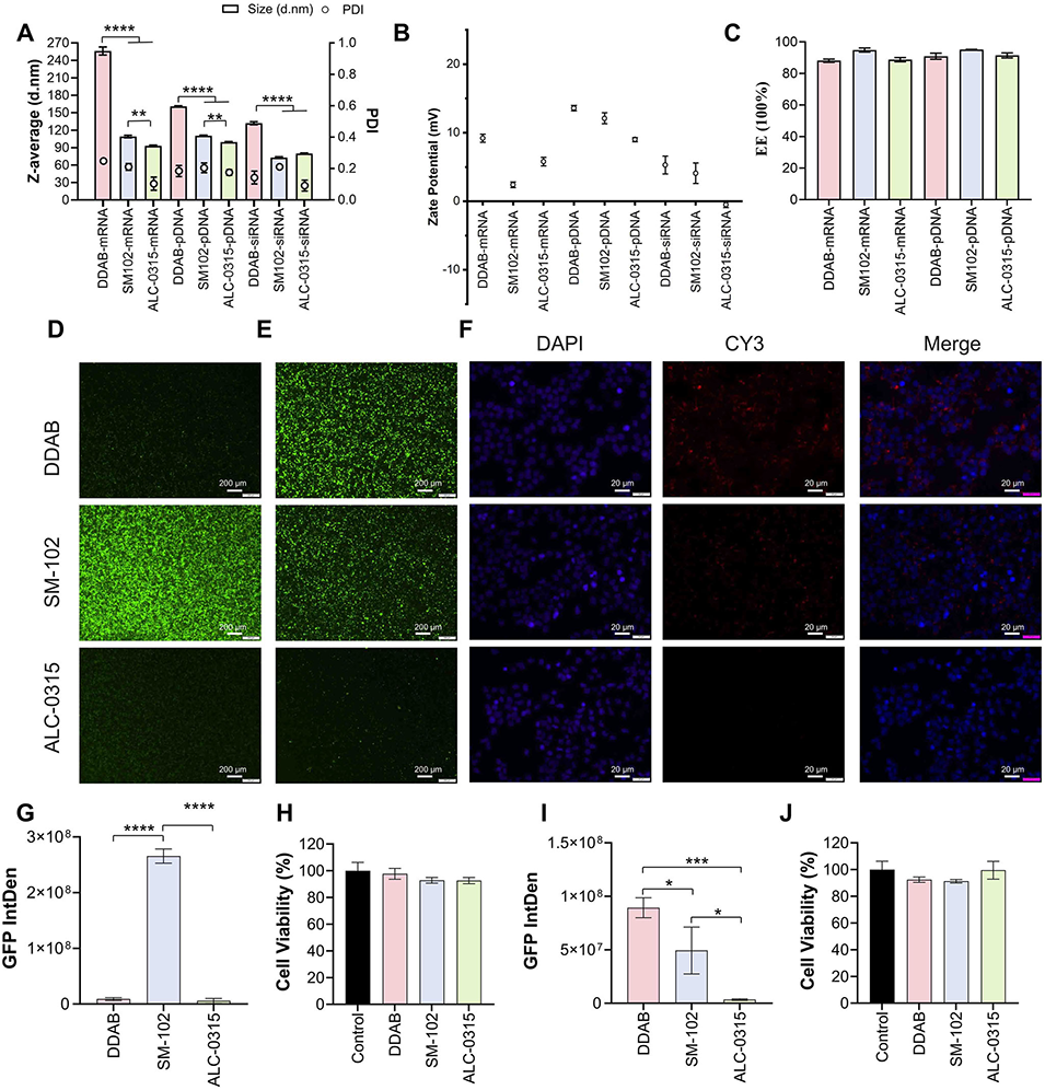 5、经mRNA、pDNA转染及siRNA摄取实验验证,所制备LNP在多种细胞中均表现优异,为RNA药物的高效开发与临床转化提供了可靠工具。