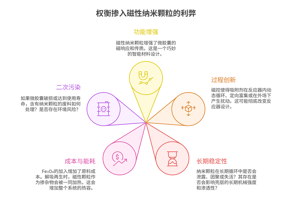4、此外,引入磁性纳米颗粒赋予微胶囊磁响应特性,可实现远程操控。该研究为高性能碳捕集材料的设计与制备提供了一种经济有效的策略。