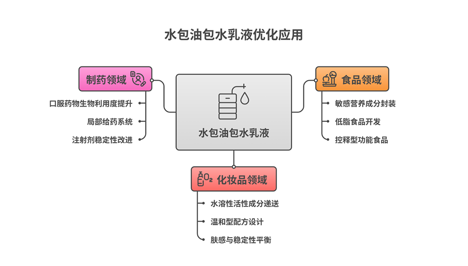 1、本研究系统评估了聚甘油蓖麻醇酯(PGPR)在水包油包水(W/O/W)乳液中的稳定作用,重点考察了不同相比例和液滴尺寸对包封率的影响。