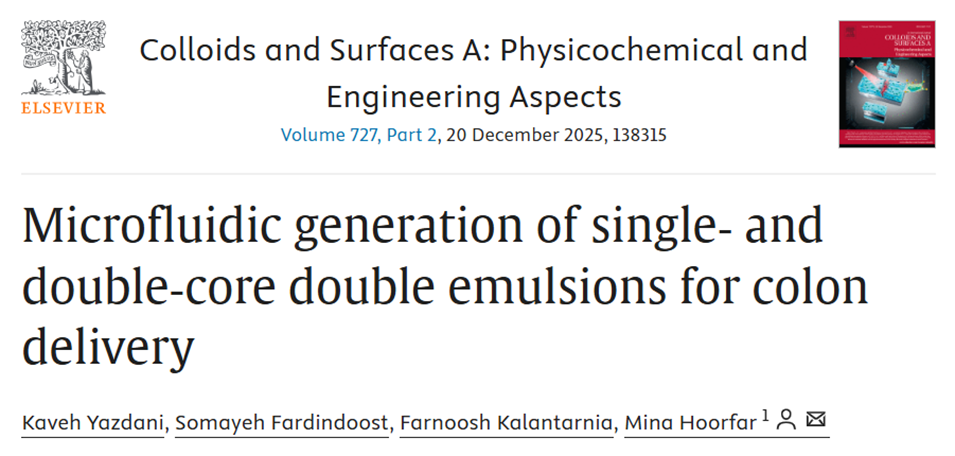 近期,加拿大维多利亚大学机械工程系团队开发了一种生物相容性微流控平台,通过设计具有不同垂直限域的3D打印流动聚焦芯片,实现了对双乳液内部单核或双核结构的灵活调控,该双乳液可通过离子交联形成海藻酸盐/葡聚糖胶囊,适用于结肠靶向递送。相关研究以“Microfluidic generation of single‑ and double‑core double emulsions for colon delivery”为题目,发表在期刊《Colloids and Surfaces A: Physicochemical and Engineering Aspects》上。