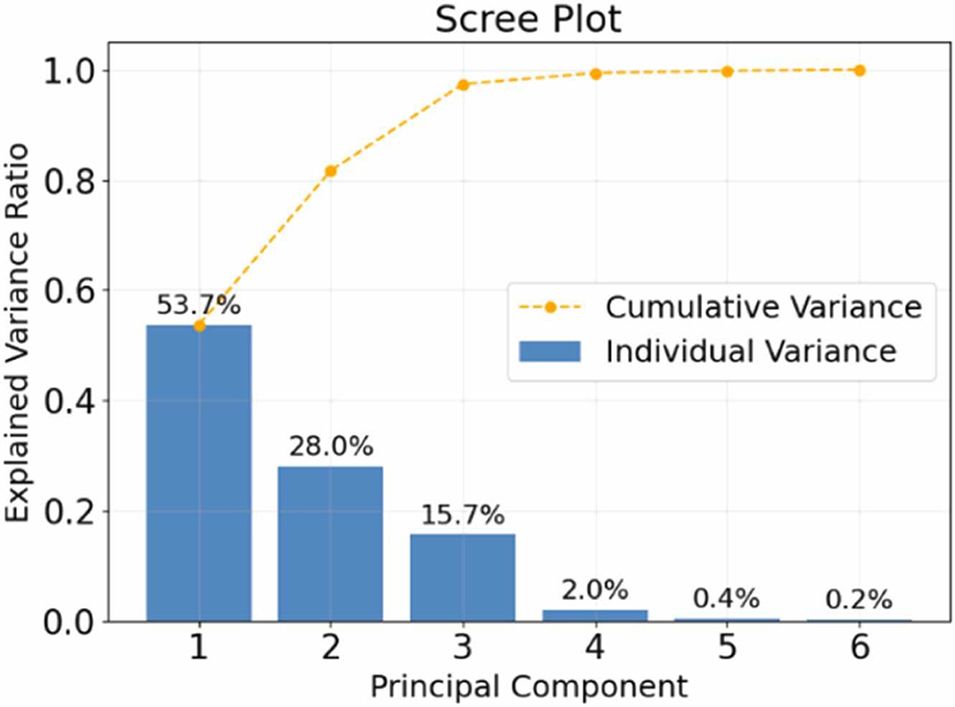 图10:基于主成分分析(PCA)的双乳液数据集降维结果,图中所示为各主成分的方差贡献率。
