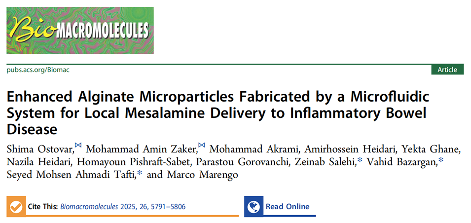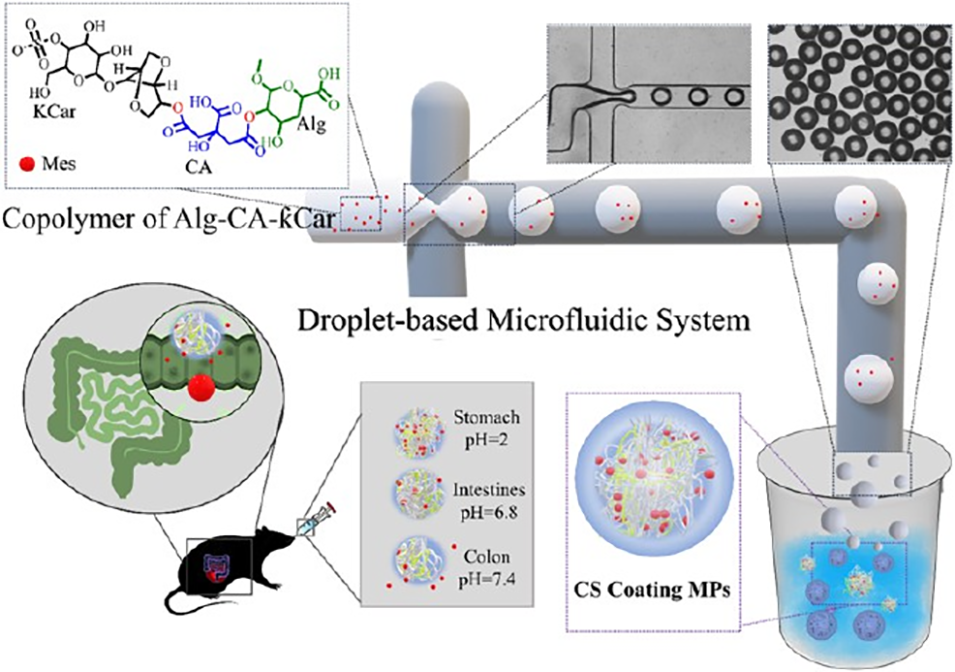 近期,伊朗德黑兰大学工程学院研究人员开发了一种新型海藻酸盐微颗粒,用于美沙拉嗪的靶向递送,以治疗炎症性肠病。该研究通过微流控技术结合柠檬酸交联和壳聚糖包覆,成功制备出粒径均一、载药量高且具有pH敏感释放特性的微颗粒;动物实验证实其能有效减轻结肠炎症。相关研究以“Enhanced Alginate Microparticles Fabricated by a Microfluidic System for Local Mesalamine Delivery to Inflammatory Bowel Disease”为题目,发表于期刊《Biomacromolecules》。