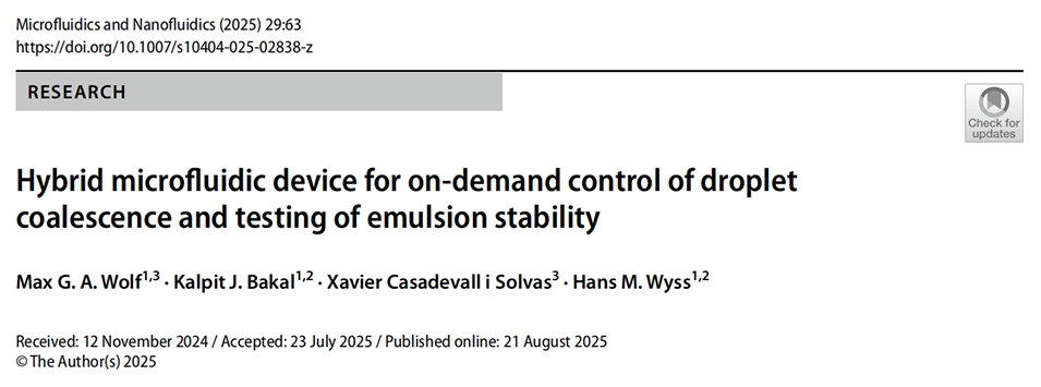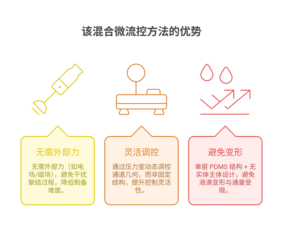 近期,有研究人员提出一种结合被动与主动控制优势的混合微流控方法,通过在 PDMS 微流控装置中对称设置压力室调控通道横截面积,实现液滴聚结的按需控制与乳液稳定性的精准表征。相关研究以“Hybrid microfluidic device for on-demand control of droplet coalescence and testing of emulsion stability”为题目,发表在期刊《Microfluidics and Nanofluidics》上。