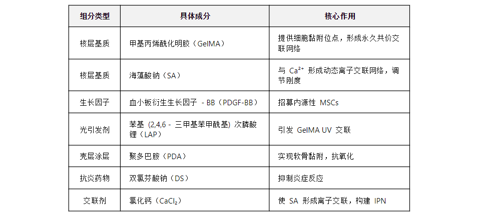 现有临床治疗存在明显局限:微骨折术常生成机械强度与耐久性差的纤维软骨;自体软骨细胞移植在获取软骨时可能加重关节损伤,且体外2D培养易致软骨细胞去分化,降低软骨特异性基因表达;传统水凝胶微球虽能递送药物或生长因子,但组织黏附能力不足,注射后易在滑液中分散,无法与关节软骨有效接触,导致生物活性成分递送效率和治疗效果受损。