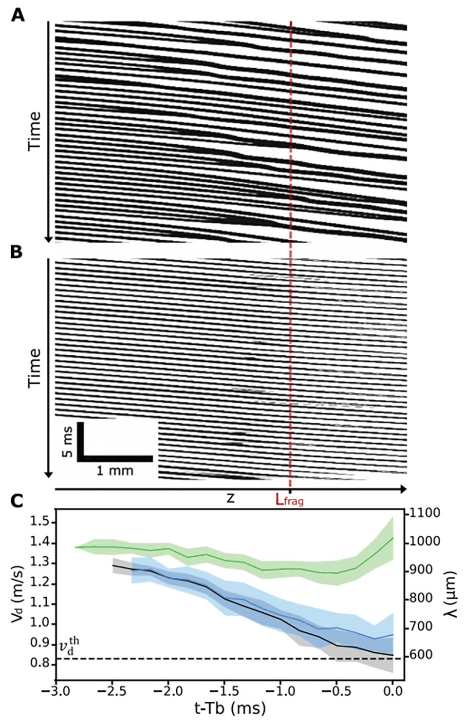 图6. 破碎前液滴(珠粒)的速度与间距特征