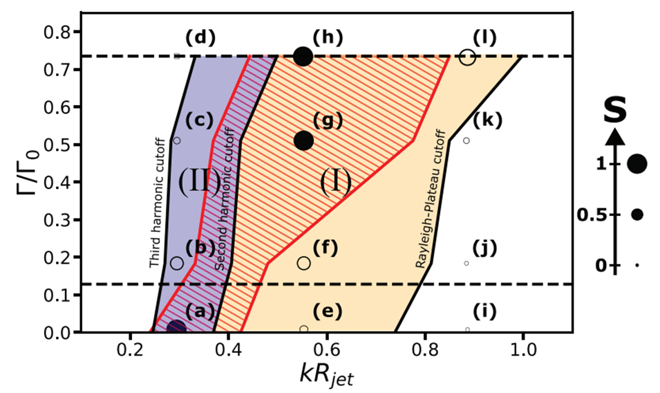 单分散液滴或胶囊的制备是气溶胶科学、喷墨打印及生物工程等多领域的长期需求,尤其在生物工程中,亚毫米级载细胞水凝胶胶囊对构建体外组织模型至关重要。传统方法常借助普拉托-瑞利不稳定性使复合射流在空气中破碎以生成液滴,但存在显著局限:液滴尺寸与喷嘴直径强相关,灵活性不足;且粘弹性射流易形成“珠串”形态,液滴间通过粘性细丝连接引发聚并,难以获得满足定量生物检测要求的高单分散性。