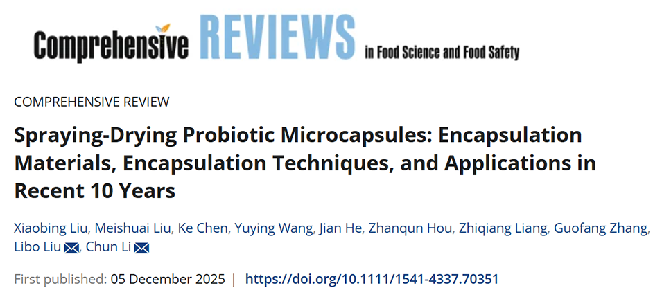 近期,东北农业大学食品科学学院李春教授、刘丽波教授发表综述,系统阐述了益生菌的喷雾干燥过程、该过程中可能受到的应激损伤、微胶囊壁材的保护机制,以及喷雾干燥技术的最新进展及其应用,旨在为喷雾干燥益生菌在食品、医药、畜牧等领域的未来应用与发展提供参考。相关研究成果以“Spraying‐Drying Probiotic Microcapsules: Encapsulation Materials, Encapsulation Techniques, and Applications in Recent 10 Years”为题目,发表于期刊《Comprehensive Reviews in Food Science and Food Safety》。